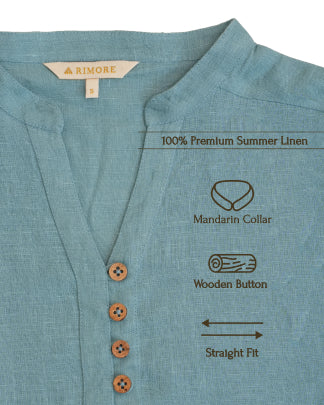 Mandarin Collared Top - 100% Linen - Women - Muted Sage