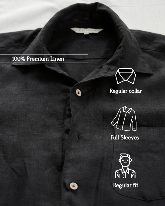 Everyday 100% Linen Regular Collar Shirt - Men Black