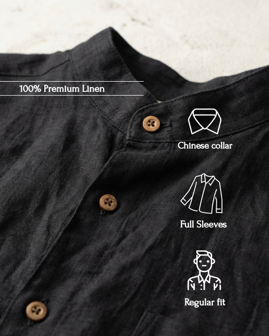 Everyday 100% Linen Chinese Collar Shirt - Men Black