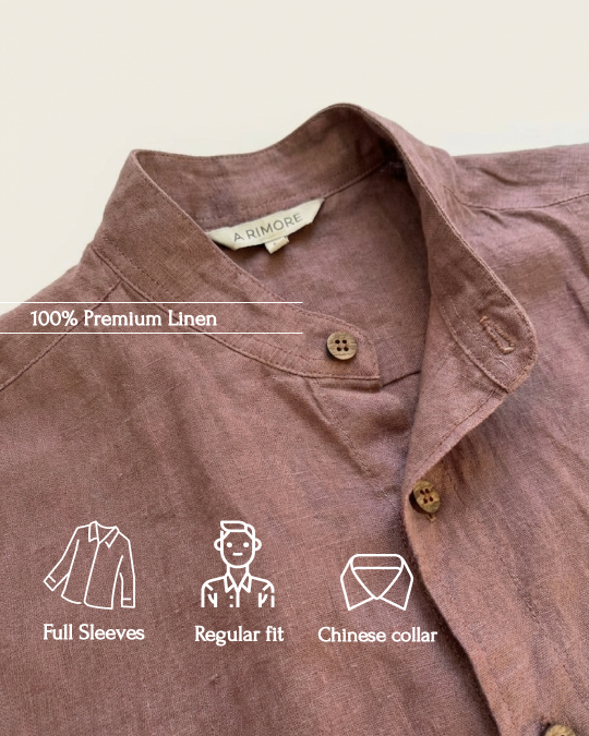 Everyday 100% Linen Chinese Collar Shirt - Men Copper