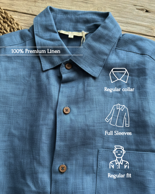 Everyday 100% Linen Regular Collar Shirt - Men Dusty Blue